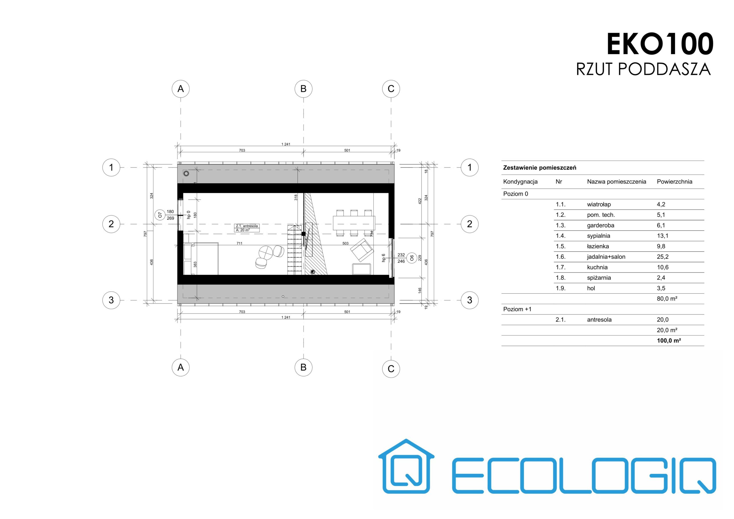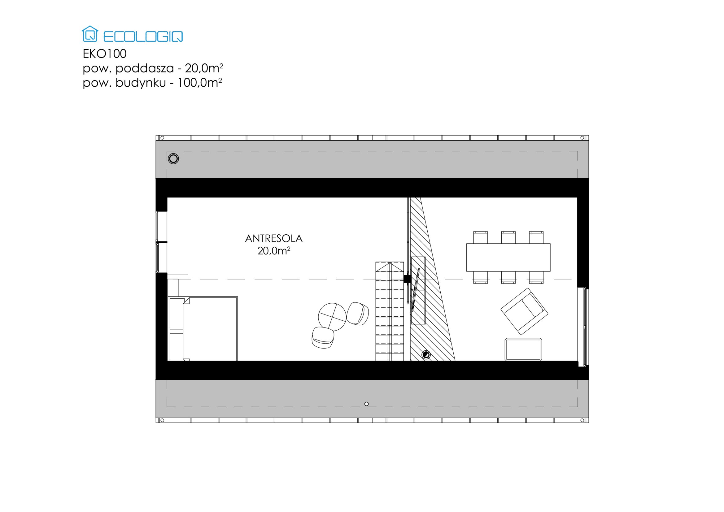 Na I piętrze przewidziano antresolę o powierzchni użytkowej 20 m² dającej duże możliwości aranżacyjne.