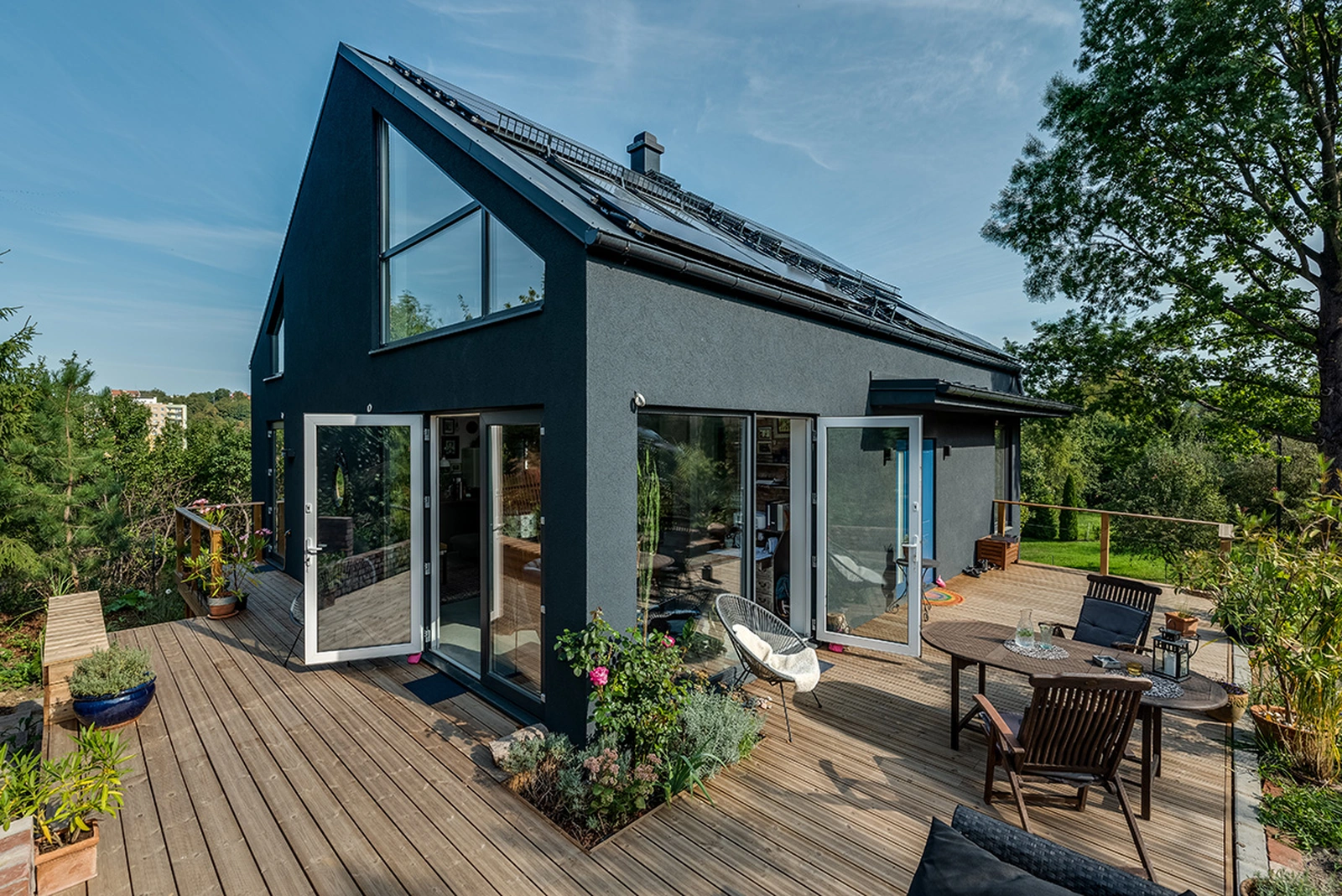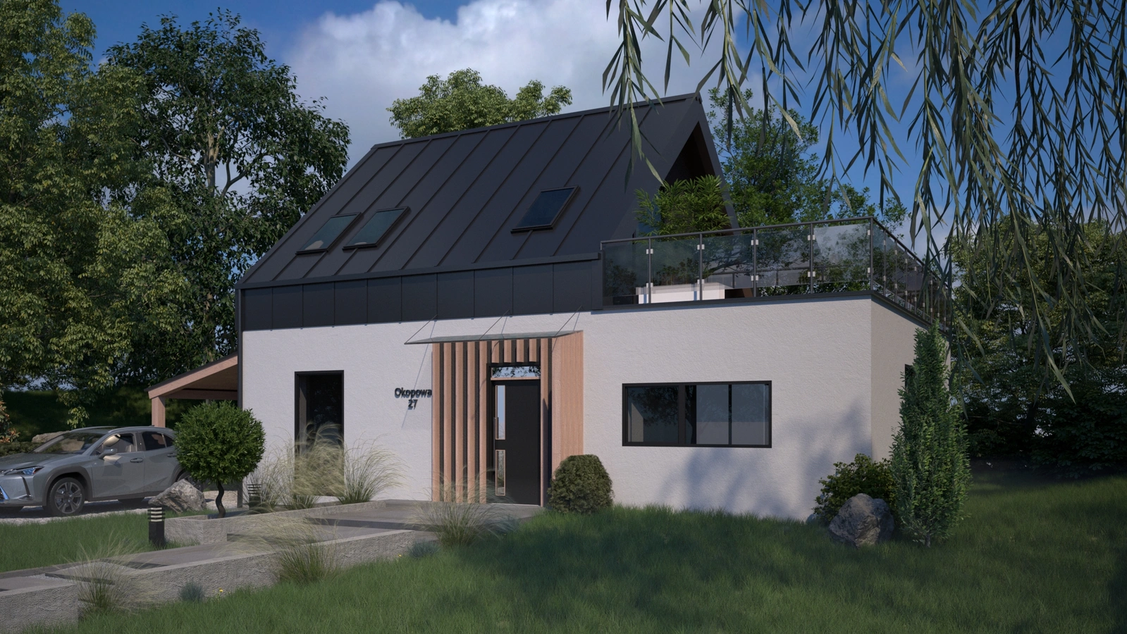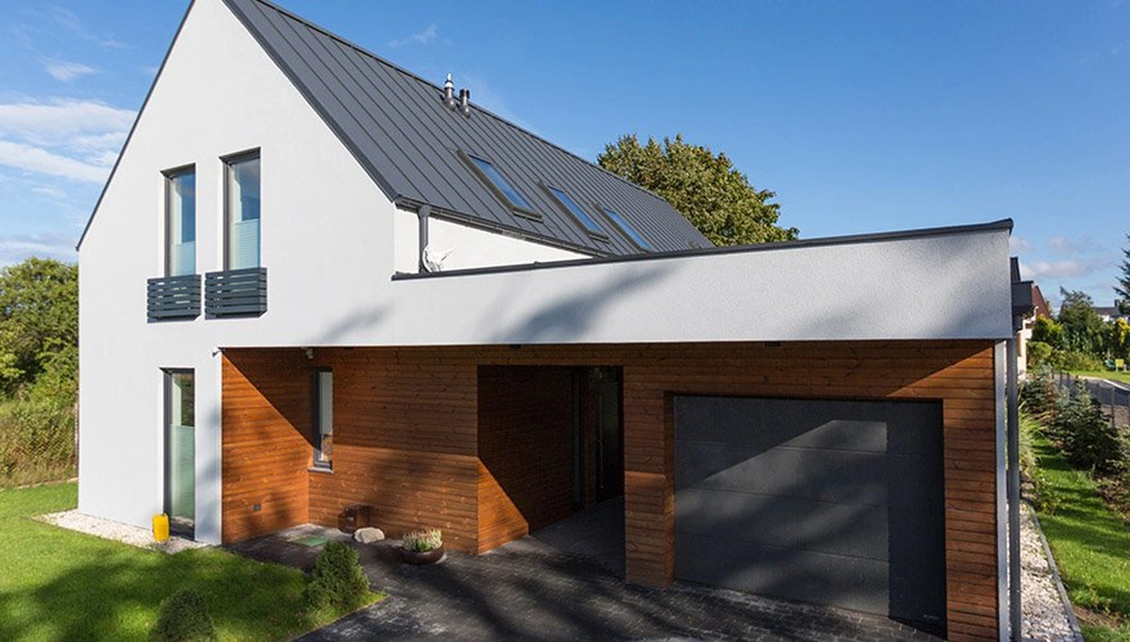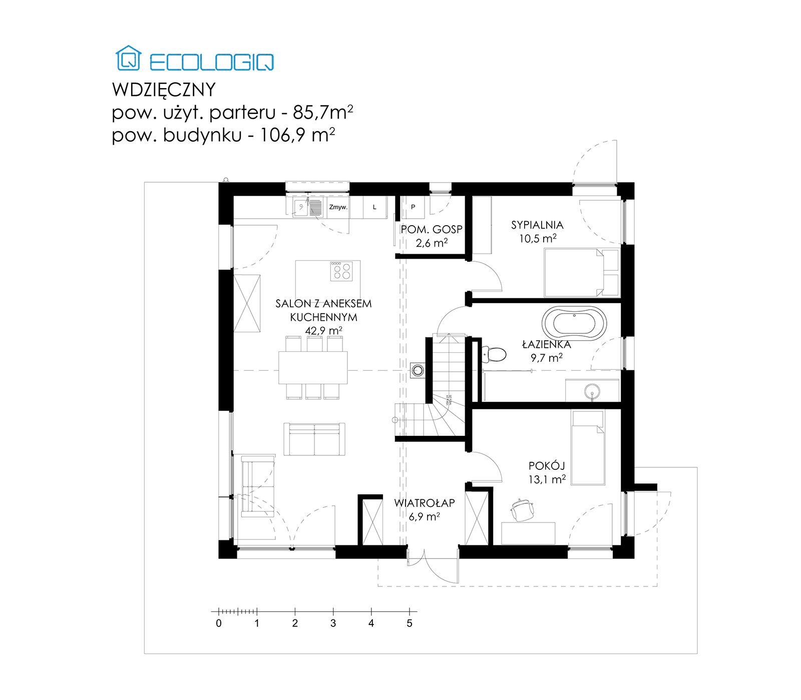 Forma zaprojektowanego obiektu nawiązuje do stylu nowoczesnej stodoły, w której duże przeszklenia zapewniają odpowiednie doświetlenie wnętrza naturalnym światłem dziennym. Wykonanie budynku w naszej energooszczędnej technologii prefabrykowanej zapewnia niskie koszty eksploatacji z bardzo dobrą charakterystyką energetyczną. Wybierając nasze ekologiczne domy prefabrykowane chronisz środowisko naturalne.